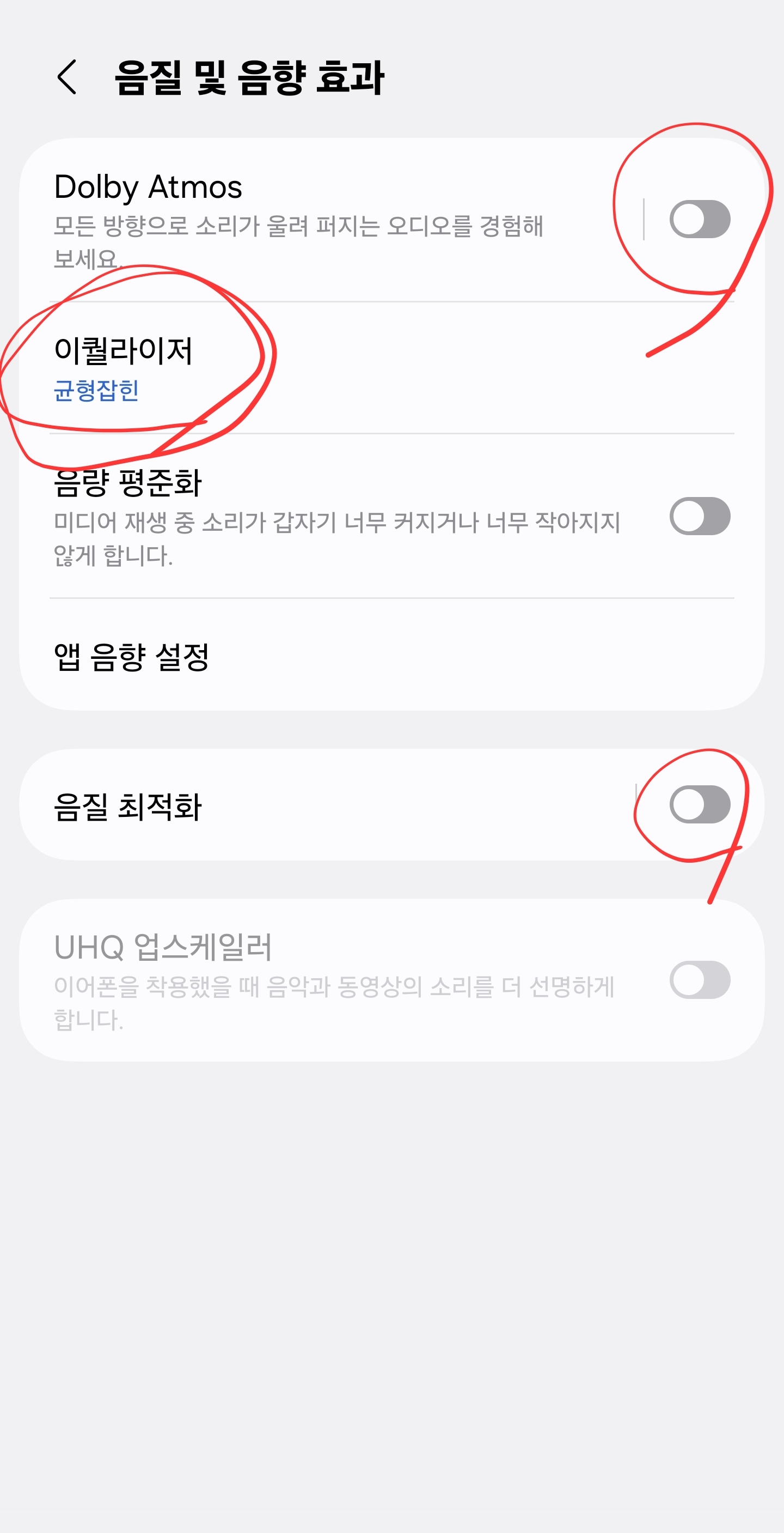 돌비, 음질 최적화는 꺼줍니다